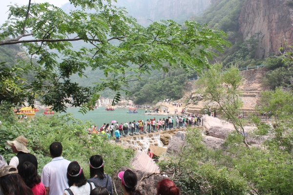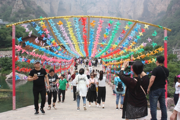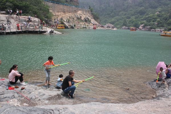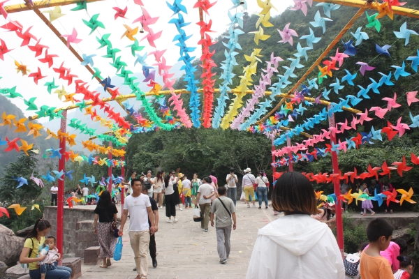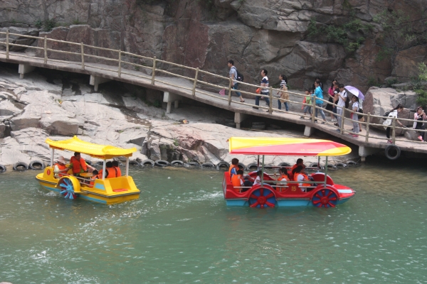 景區(qū)基本都是親水的項目,是孩子們游山玩水的好去處,孩子們可以在水上撐竹筏,玩碰碰船;在淺溪里趟水,打水仗。我們沿著峽谷前行,近賞碧水,遠(yuǎn)眺瀑布,邊走邊看,邊看邊拍,真有心曠神怡,飄飄欲仙之感。