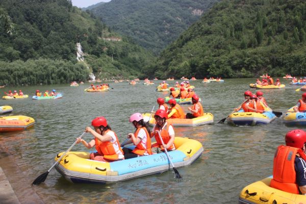 落差45米的回旋漂流。。。。。。一路歡呼,一路尖叫,與群峰競(jìng)技,博水浪之勇,天下漂流,爽在豫西。